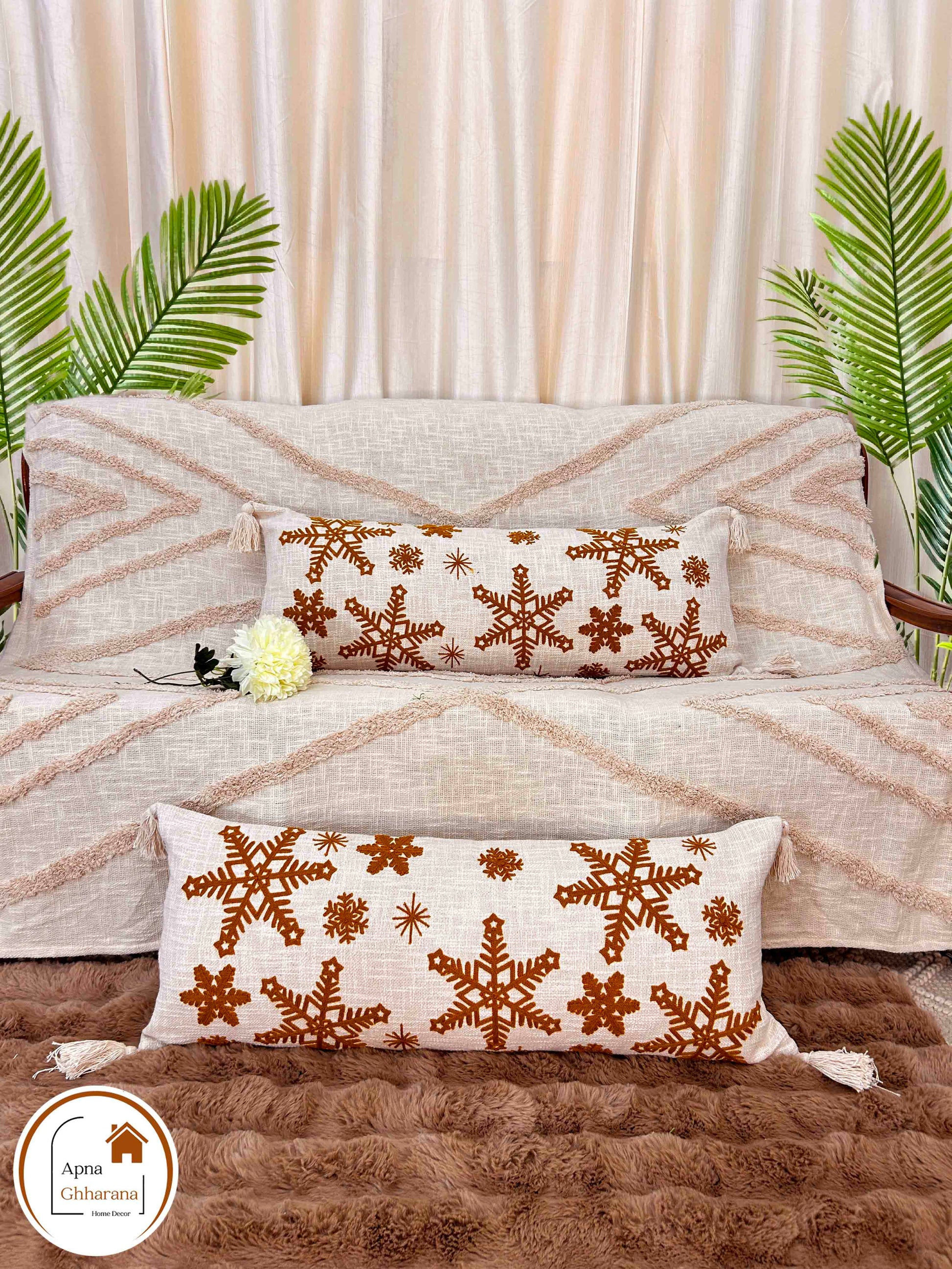 ✔ Embroidered lumbar cushion cover with detailed thread work
